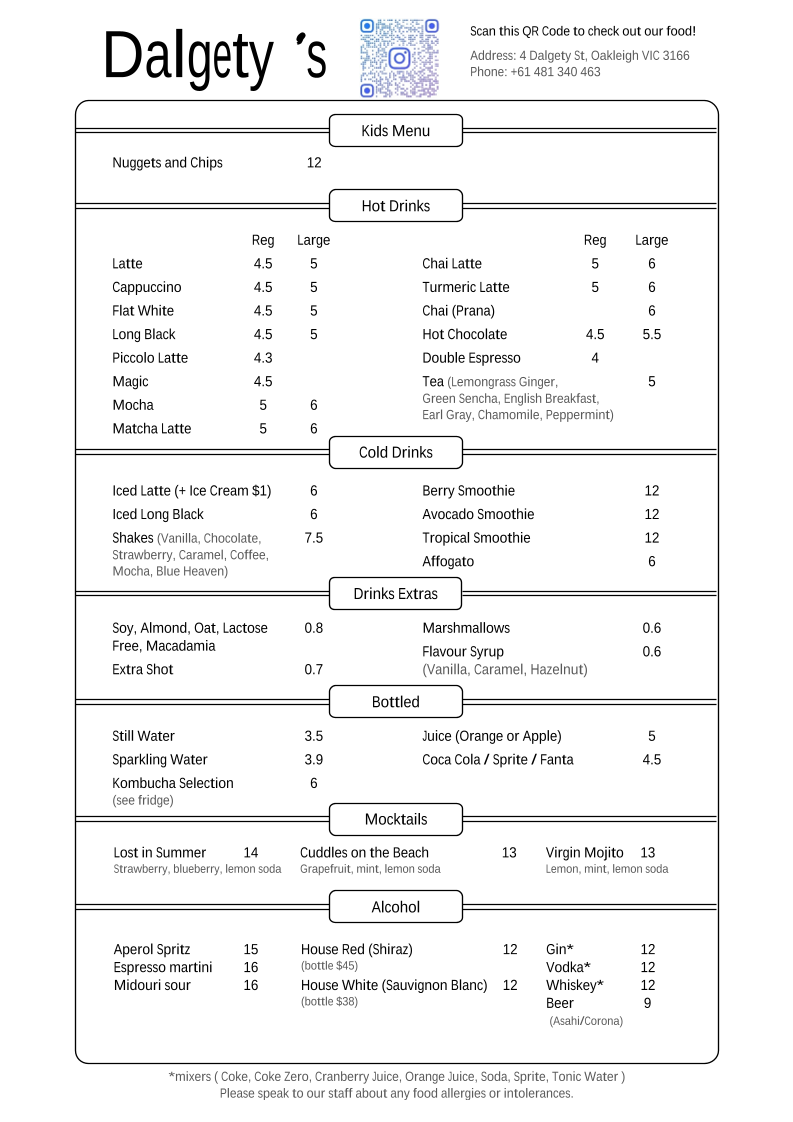 In conclusion, Dalgety's Cafe is not just another café; it is a community hub where every meal is an experience, and every visitor is treated like family. The perfect blend of great food, inviting ambiance, and stellar service makes this café a must-visit when in Oakleigh. You won’t be disappointed!